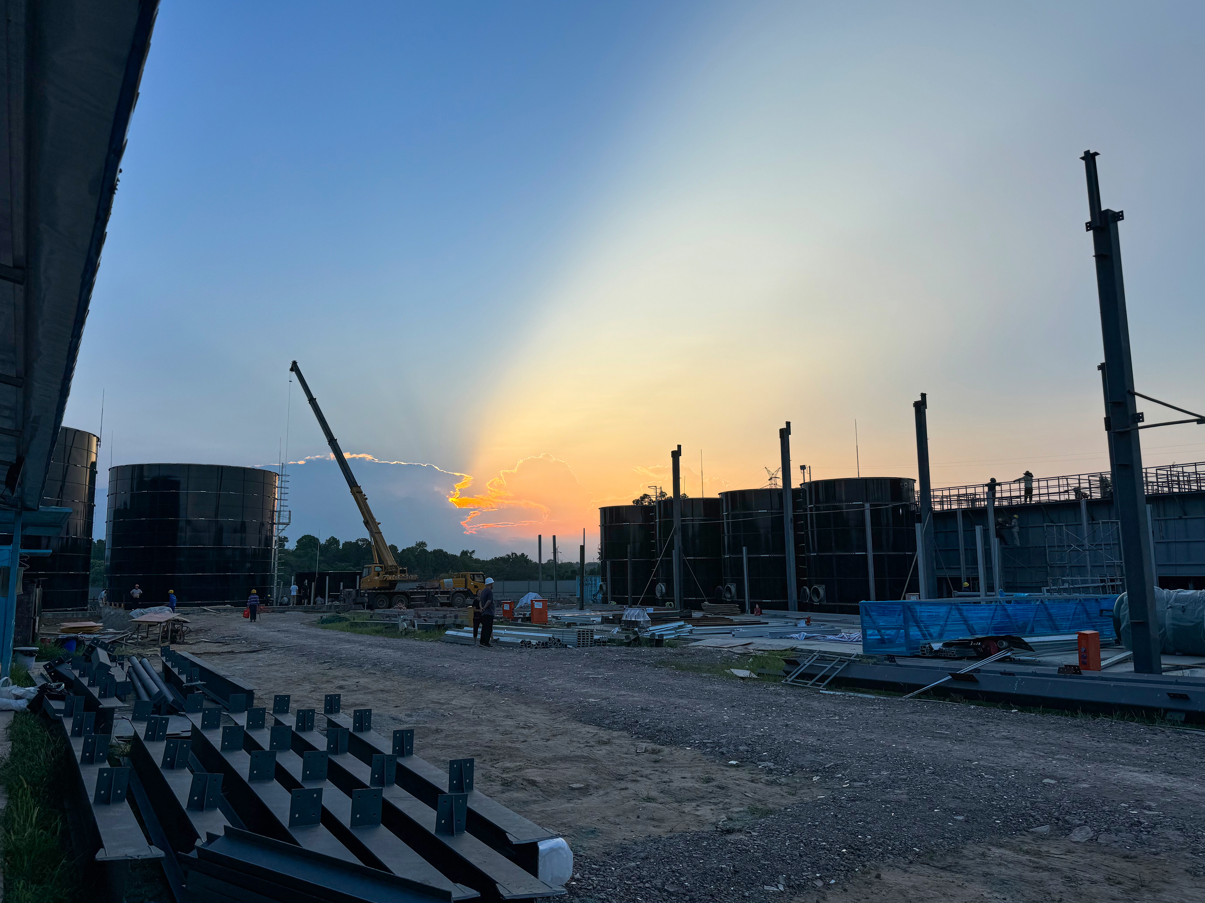 2025年7月4日,清研环境与四川省自贡市大安区政府签署了《清研绿色低碳循环利用项目投资协议》,“川南页岩气钻井废水处理项目”同日举行了开工仪式。经过紧锣密鼓的施工,8月15日,该项目园区的办公楼主体结构已顺利完成封顶,厂区生产车间、池体等设施也正在迅速推进建设。