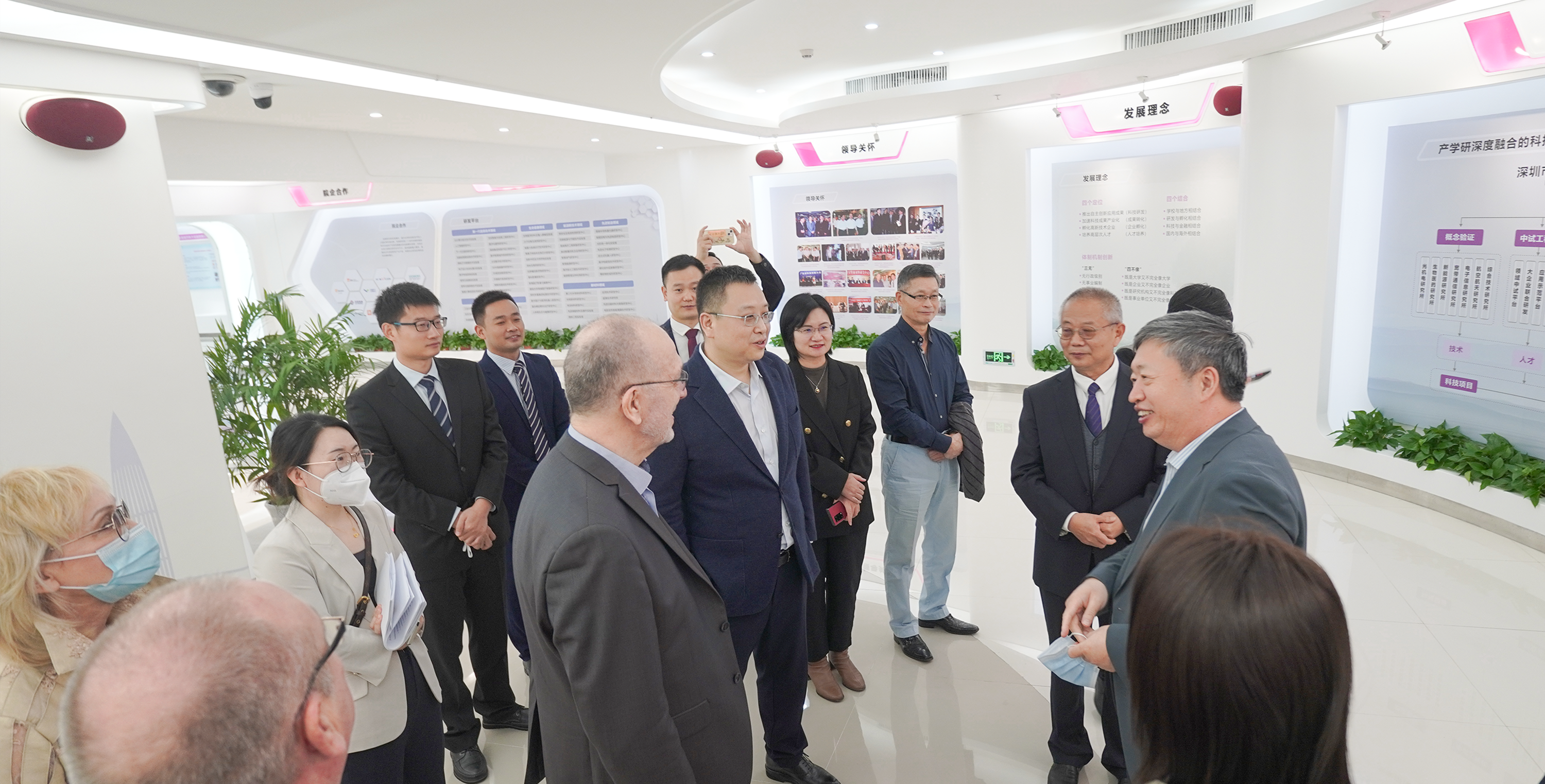 活动伊始,考察访问团来到了深圳清华大学研究院展厅,深圳清华大学研究院院长嵇世山先生向考察访问团详细介绍了深圳清华大学研究院的发展历程、产学研深度融合的科技创新孵化体系及现有创新技术。