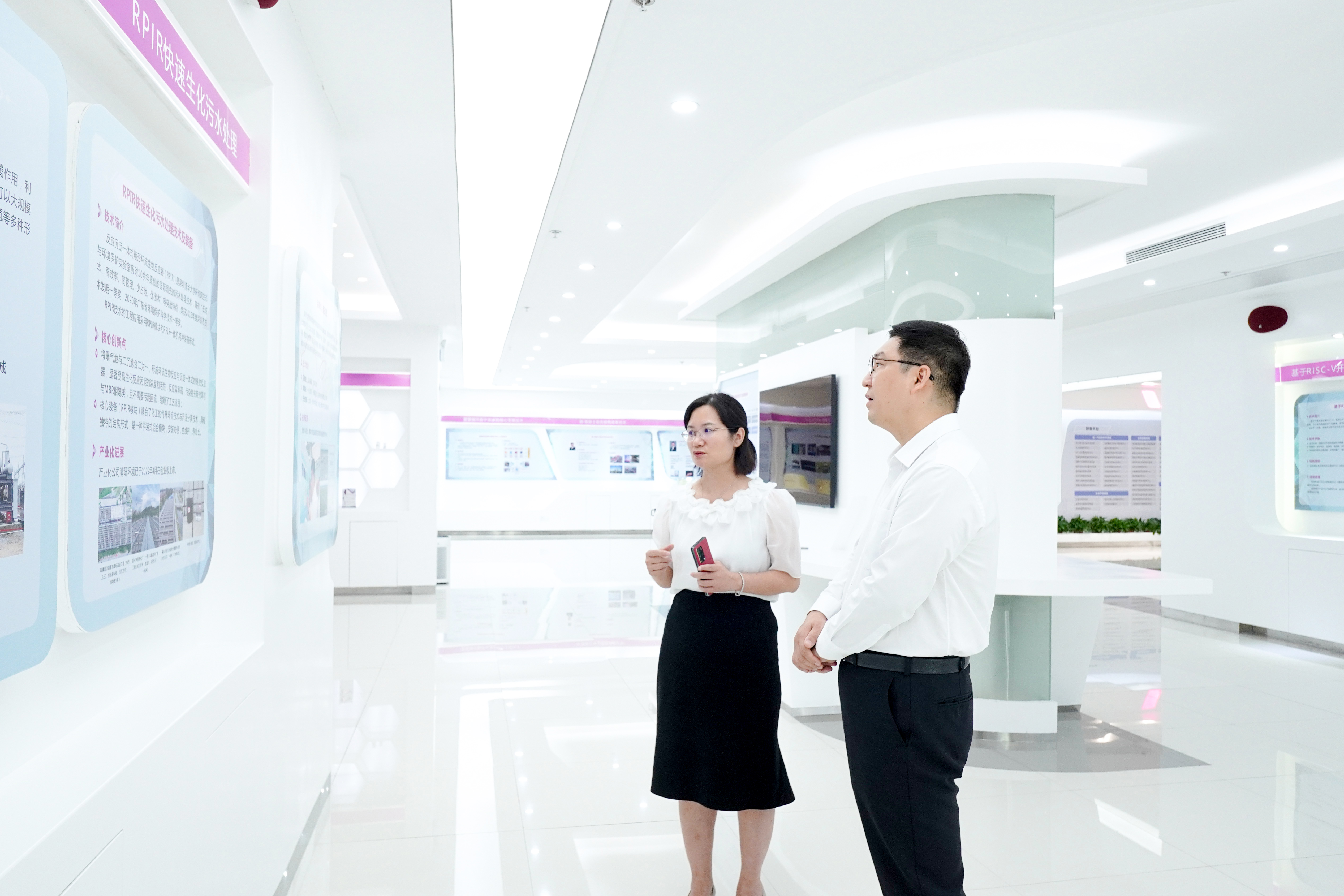 袁志雄副书记一行首先参观了深圳清华大学研究院展厅,刘总向调研组介绍了研究院的发展历程、产学研深度融合的科技创新孵化体系和孵化成果,刘总介绍道:“清研环境是研究院新阶段创新孵化模式的先行探索者和践行者,传承了深圳清华大学研究院的创新基因,凭借着探索精神和社会责任感,推动科技成果走向实际应用、推动公司走向了广阔市场。”袁志雄副书记对研究院的创新孵化体系及其取得的成绩表达了由衷的赞赏。
