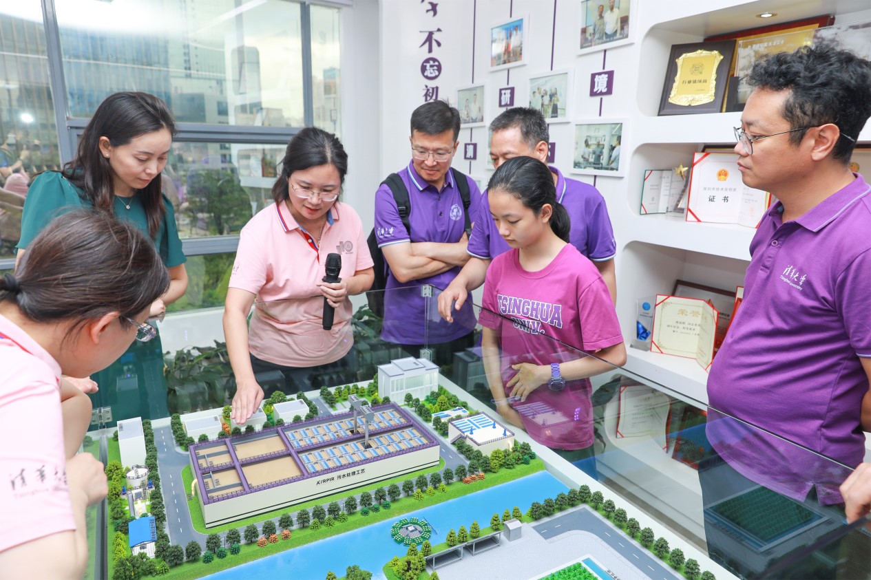 师生一行首先参观了深圳清华大学研究院展厅,刘总向调研组介绍了研究院的发展历程、产学研深度融合的科技创新孵化体系和孵化成果,以及清研环境先行探索和践行研究院新阶段创新孵化模式。清研环境从实验室的一个科研项目出发,自主研发了RPIR快速生化污水处理技术,并推动创新科技成果实现了技术产业化。师生一行听完刘总的介绍后,纷纷表示研究院的产学研创新孵化模式让他们很受启发,清研环境的探索和创新精神值得大家学习。